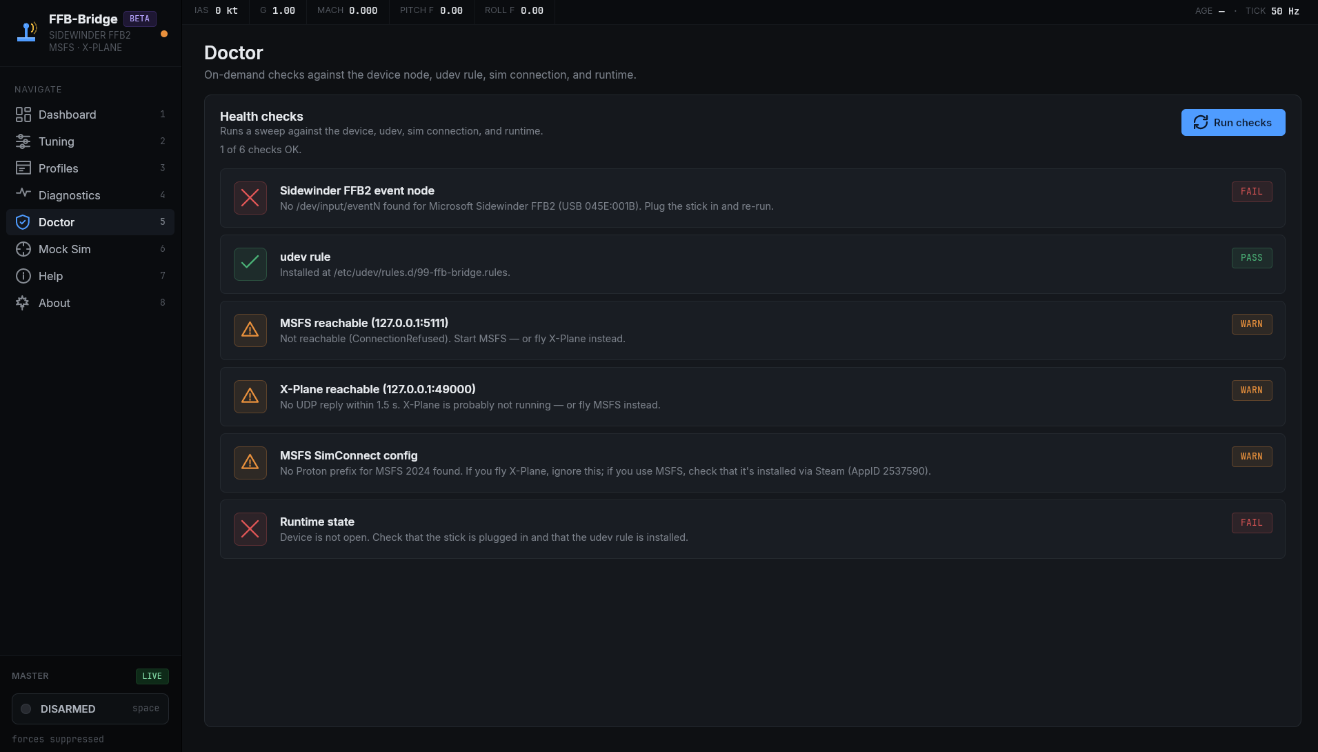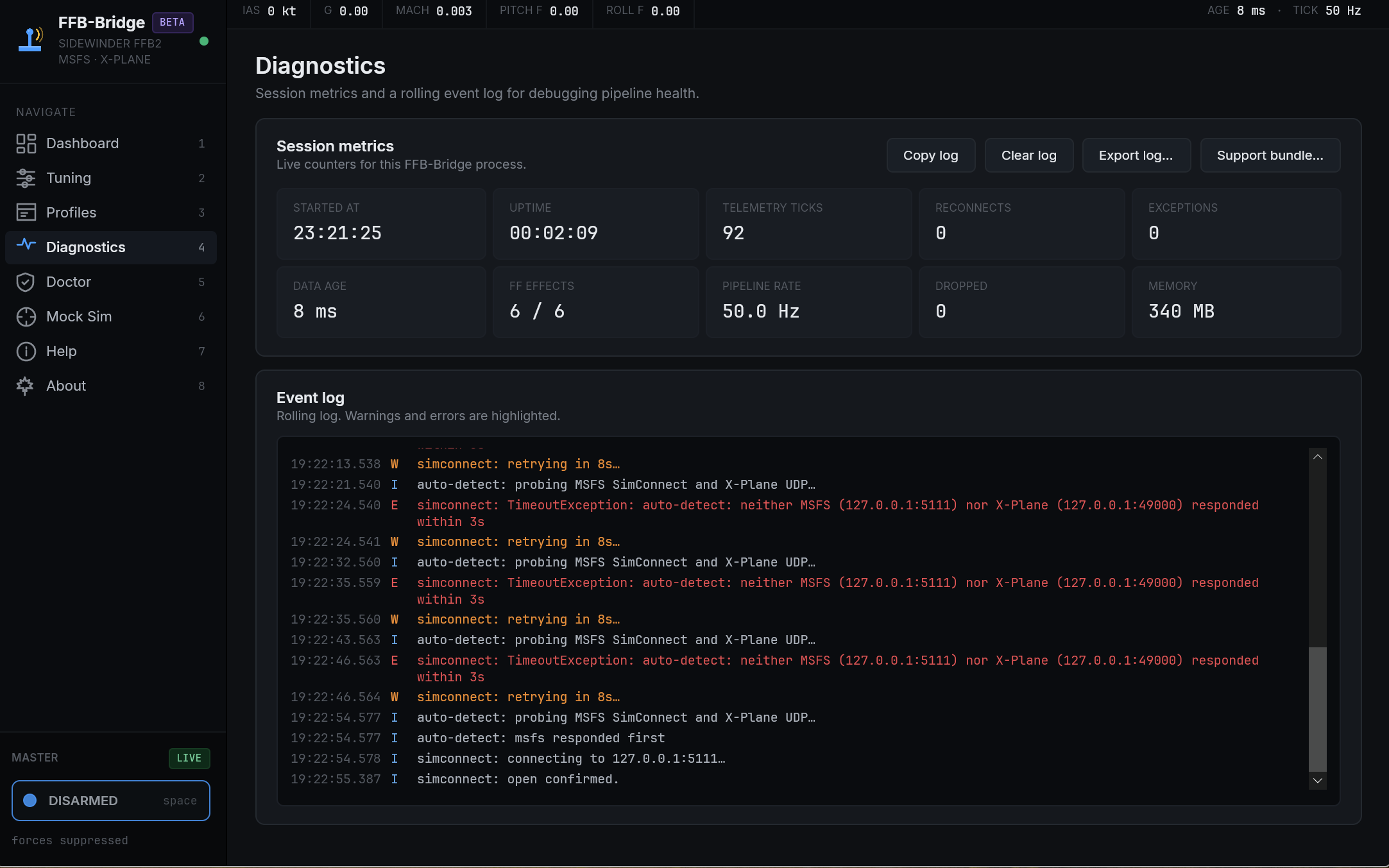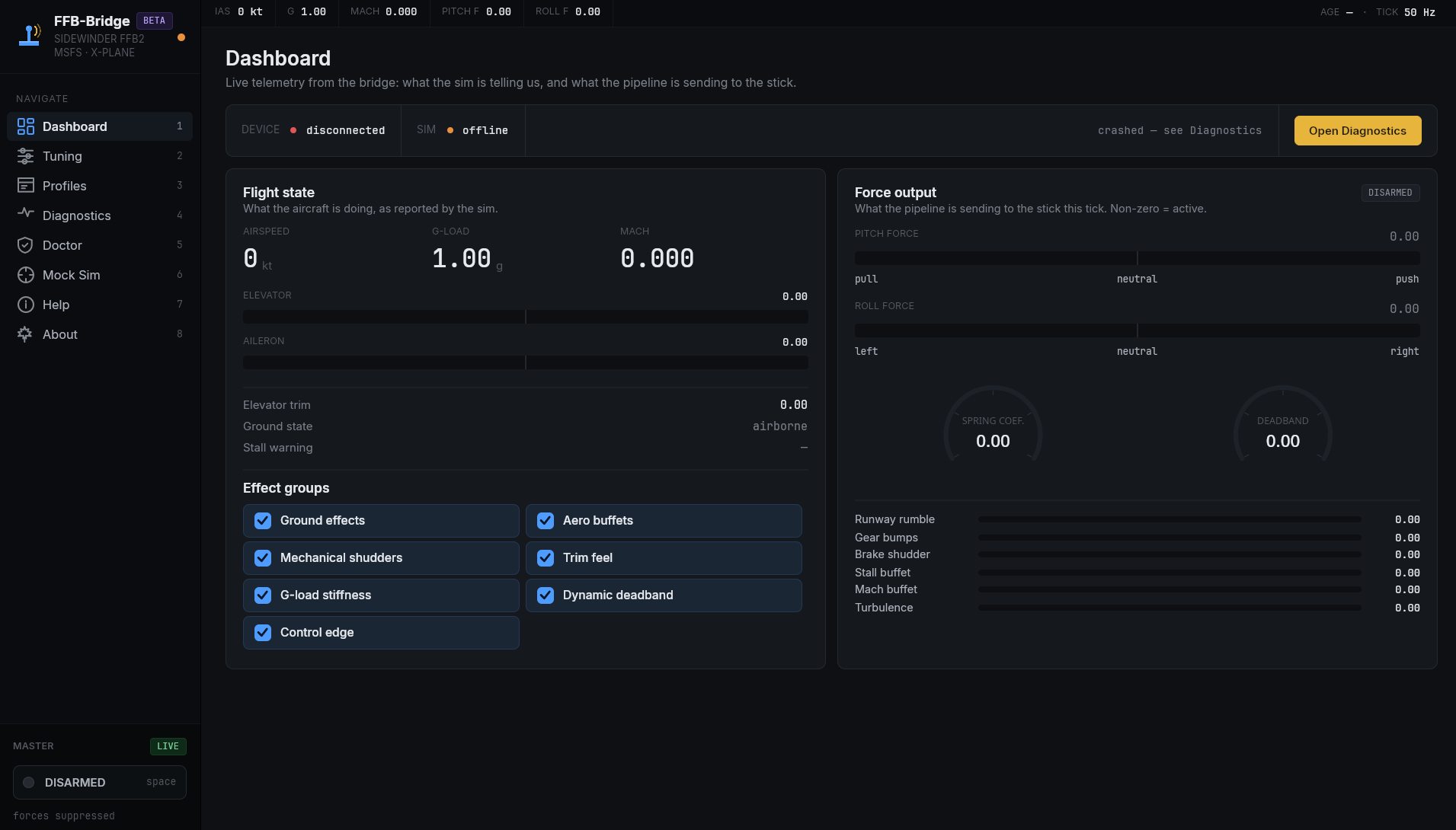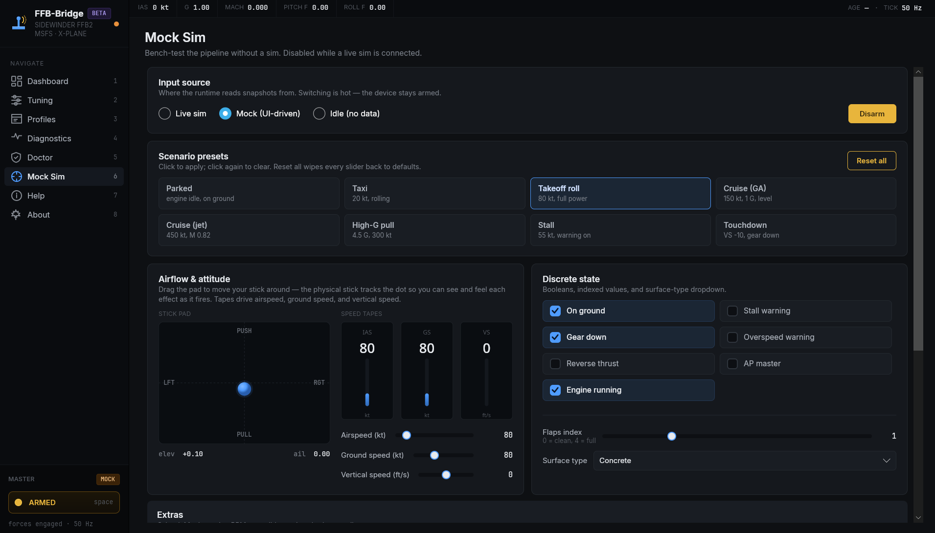 FFB-Bridge is a solo project, built for simmers by a simmer. The beta exists to put the force model in front of a wider range of aircraft and flying styles than one workbench can cover.